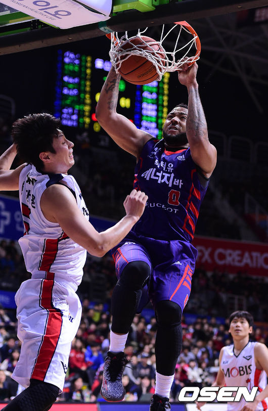 31일 오후 고양체육관에서 열린 '2014-2015 KCC 프로농구' 고양 오리온스와 울산 모비스의 경기 4쿼터 길렌워터가 덩크를 하고 있다.