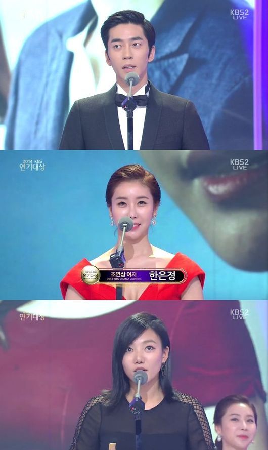 신성록과 이채영, 한은정은 31일 오후 서울 여의도 KBS홀에서 열린 2014 KBS 연기대상에서 남녀 조연상을 수상했다.