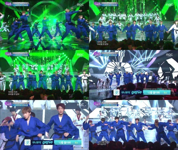 보이프렌드와 방탄소년단은 31일 오후 8시 55분부터 생방송으로 진행된 '2014 MBC 가요대제전'에서 태권도 군무를 보여줬다.