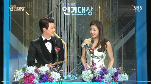 김지훈과 강소라는 31일 오후 8시 55분 서울 강남구 삼성동 코엑스에서 개최된 '2014 SBS 연기대상'에서 미니시리즈 남자특별연기상 시상에 나섰다.
