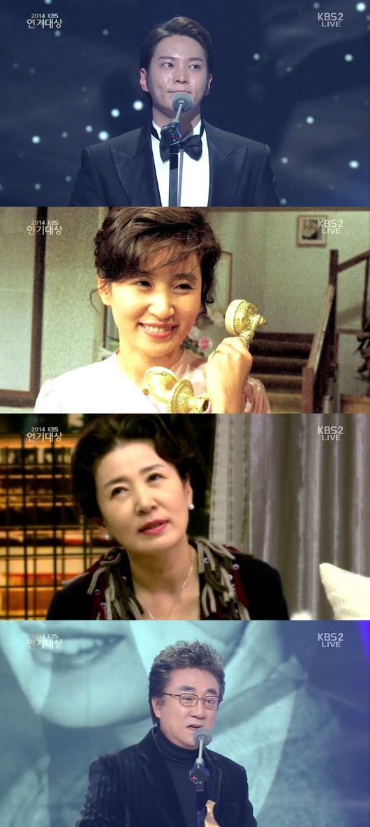 한편 2014 KBS 연기대상에서는 미니시리즈, 중편드라마, 장편드라마, 일일극, 1~6월 단막극, 9~12월 단막극 등으로 나눠 올 한 해 KBS를 빛낸 드라마를 시상한다. 이외에도 네티즌상 남-녀, 베스트 커플상 등이 시청자들의 투표를 통해 선정되며 진행은 서인국-박민영-김상경이 맡았다.