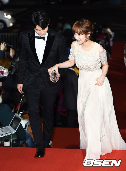 31일 오후 서울 여의도 KBS홀에서 진행되는 '2014 KBS 연기대상'에 앞서 서인국과 박민영이 레드카펫을 밟고 있다.