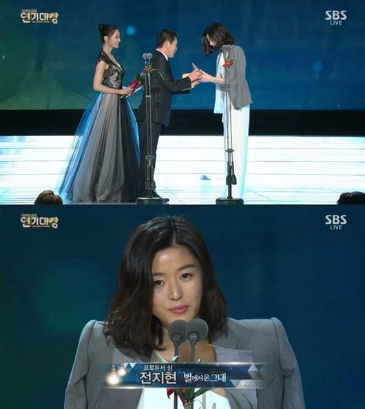 배우 전지현이 2014 SBS 연기대상에서 프로듀서상을 수상했다.