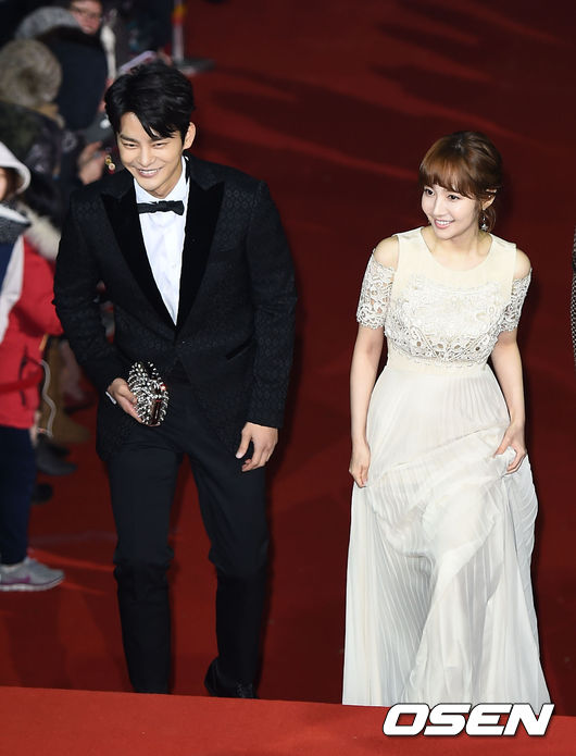 31일 오후 서울 여의도 KBS홀에서 진행되는 '2014 KBS 연기대상'에 앞서 서인국과 박민영이 레드카펫을 밟고 있다.