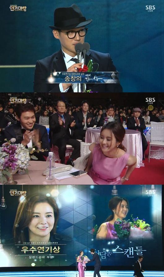 송창의와 최정윤이 2014 SBS 연기대상에서 우수연기상을 수상했다.