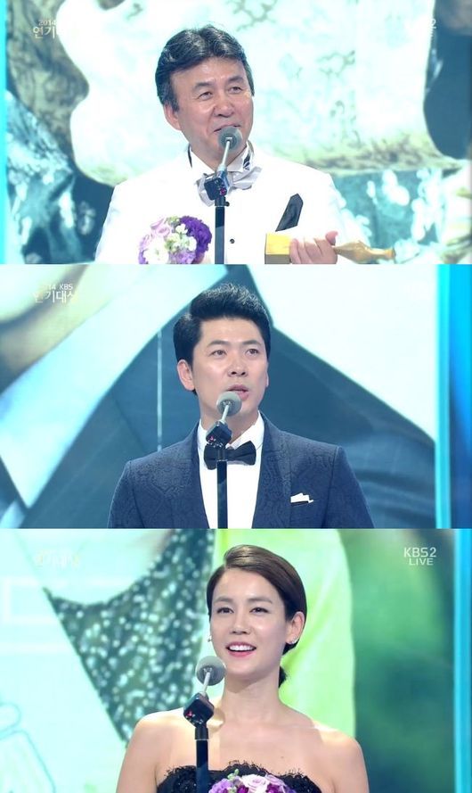 박영규, 김상경, 김지호는 31일 오후 서울 여의도 KBS홀에서 열린 2014 KBS 연기대상에서 장편드라마 부문 남녀우수연기상을 받았다.