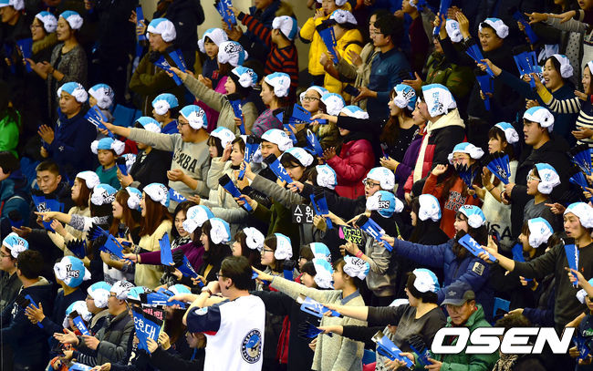 '양의 해'를 맞아 팬들이 양머리 모양의 수건을 둘러쓴 채 응원하고 있다. / youngrae@osen.co.kr