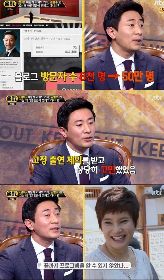 ‘님과 함께’에 출연하며 중년 여성들의 마음을 사로잡은 김범수는 “블로그 방문자가 8천명에서 50만명으로 늘었다”면서 프리랜서 선언 후 가장 뜨거운 관심을 받고 있다고 밝혔다.