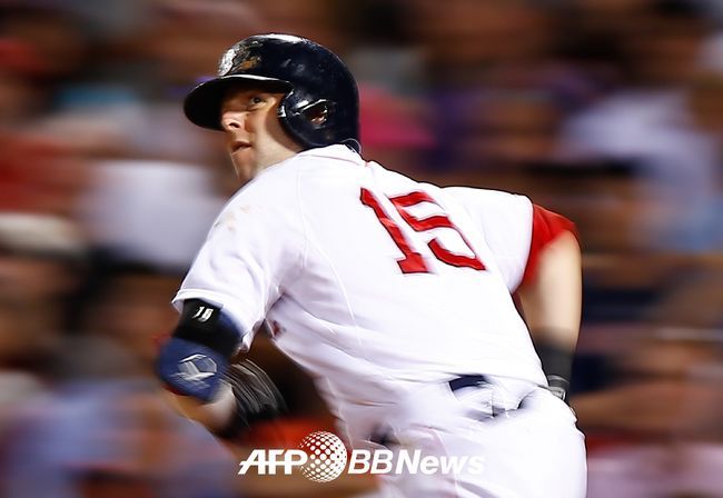 현역 선수 중 등번호 #15를 달고 있는 몇 안 되는 스타플레이어인 보스턴 레드삭스 내야수 더스틴 페드로이아. 2015년 활약이 주목된다. ⓒAFPBBNews = News1(무단전재 및 재배포 금지)