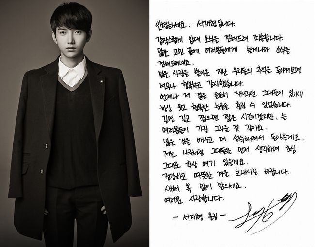 함께 공개된 자필편지로 재형은 “갑작스럽게 입대 소식을 전해드려 죄송하다”며, “많은 사랑을 받아 온 지난 우리들의 추억을 돌이켜 보면 너무나 행복하고 감사했다”고 팬들에게 미안하고 고마운 마음을 표현했다. 이어, “길면 길고 짧으면 짧은 시간이겠지만, 늘 여러분들이 가장 그리울 것 같다. 많은 것을 배우고 더 성숙해져서 돌아오겠다”고 인사했다.