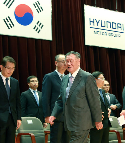 정 회장은 이어 "최근 세계 경제는 저성장이 지속되면서 신흥국을 중심으로 정치적 불확실성이 증가하고 있고, 자동차 메이커 간 경쟁이 나날이 치열해지고 있다"고 올해 경영환경을 진단했다. 그러면서 "혁신적인 기술과 제품 개발 능력의 확보를 통해 미래 경쟁력을 한층 강화하는 해가 되어야 한다"고 강조했다.