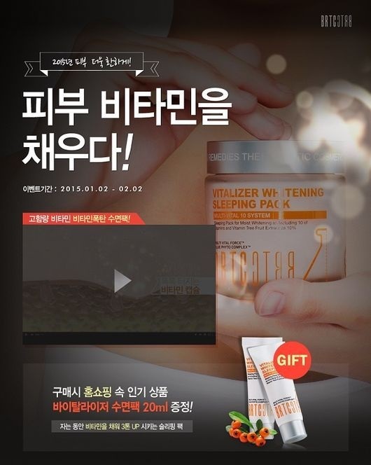 이벤트 제품 중에는 홈쇼핑 완판 기록을 세우고 '비타민 수면팩'으로 유명해진 '바이탈라이저 화이트닝 슬리핑 팩'은 10가지 복합 비타민 10% 농축과 비타민나무 열매 추출물 10% 등 타사 보다 많은 양의 비타민이 함유되어 화이트닝의 효과를 얻을 수 있는 비타민 수면팩으로 지난해 홈앤쇼핑 1차 론칭 방송 이후 화제가 된 제품이다.