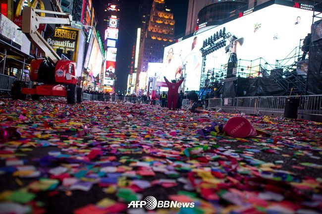 2일(이하 한국시간) 미국은 현지시각으로 2015년 새해를 맞이했다. 뉴욕 타임스퀘어에도 100만 인파가 몰려들어 분위기가 한껏 달아올랐다. 모두가 기쁜 마음으로 새해를 맞이했지만 그들이 머무른 자리에는 쓰레기만 가득했다.
