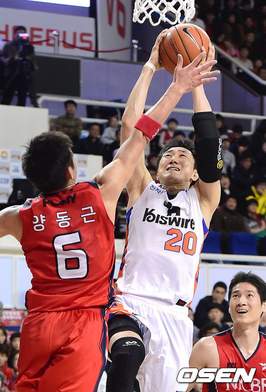 4쿼터 전자랜드 정영삼이 골밑슛을 시도하고 있다.