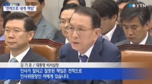 김 실장은 "청와대에서 국가원수를 모시고 근무하는 우리들의 가슴이나 머리 속에 자기 개인의 영달이나 이익을 위해 이 직위를 이용하거나 활용한 일이 있어서는 안 된다"며 "충(忠)이 무언가 한자로 쓰면 '중심(中心)'이다. 중심을 확실히 잡아야 한다"고 힘줘 말했다.