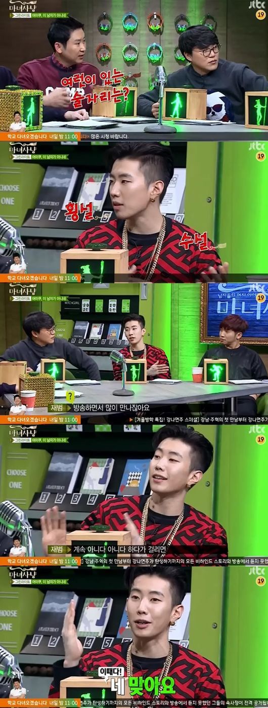 박재범은 2일 오후 방송된 JTBC '마녀사냥-남자들의 여자이야기(이하 마녀사냥)'에 재출연, 여전히 ‘아는 형’ 발언으로 이야기를 시작해 웃음을 자아냈다.