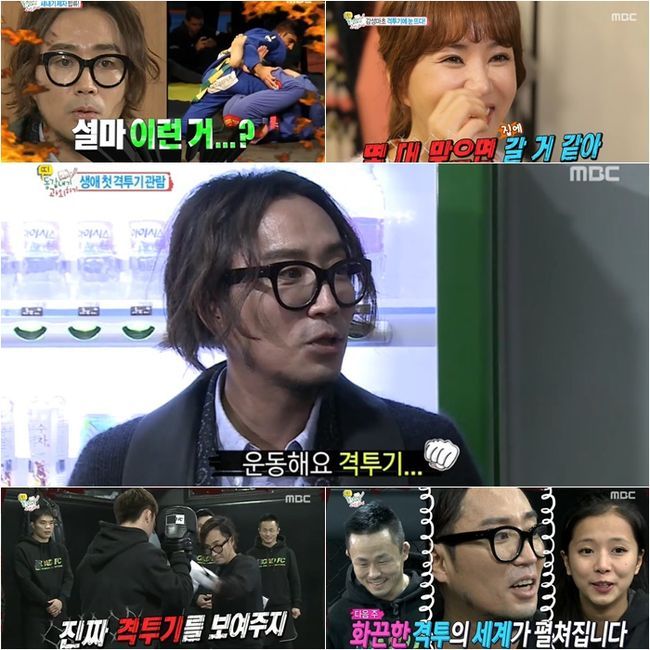 우연히 만난 이국주 또한 “피아노 앞에선 되게 멋지고 섹시했는데 오늘은 한없이 작아 보인다”고 표현할 정도로 정재형은 긴장이 역력한 모습. 정재형은 “지금 뭔가 축 내려오는 것 같다”며 울상을 지었지만, 이국주와의 유쾌한 대화 덕분에 긴장감을 풀고 생애 첫 격투기 관람에 나섰다.