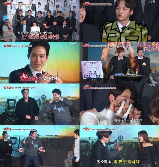 이날 방송된 '택시'는 드라마 '미생' 특집으로 MC 이영자와 문희준의 진행하에 임시완, 이성민, 이경영, 손종학, 강소라, 김대명, 오민석, 전석호, 강하늘, 변요한 등 드라마 출연배우 12인이 동시 출연한 '미생 신년회 1탄'으로 꾸며졌다. 단체 토크쇼 콘셉트로 진행됐던 '택시-미생특집'은 드라마 비하인드 및 애프터 스토리를 배우들의 입을 통해 전해들었으며, 캐릭터 뒤에 가려졌던 배우들의 끼와 예능감이 웃음을 자아내기도 했다.