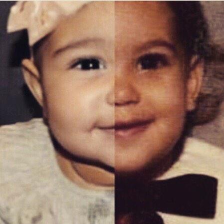 사진은 두 아기의 사진을 반반씩 합쳐놓은 것으로, 아기 때의 킴 카다시안과 현재 그의 딸이 코, 입 등에서 놀랍게 닮아 있어 눈길을 끈다. 다른 것은 눈썹 모양과 눈 크기 정도. 킴 카다시안은 지난해 카니예 웨스트와의 사이에서 딸을 낳았다.