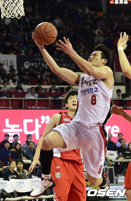 3일 오후 서울 잠실학생체육관에서 열린 '2014-2015 KCC 프로농구' 서울 SK와 안양 KGC의 경기, 4쿼터 안양 최현민이 레이업슛을 성공시키고 있다.