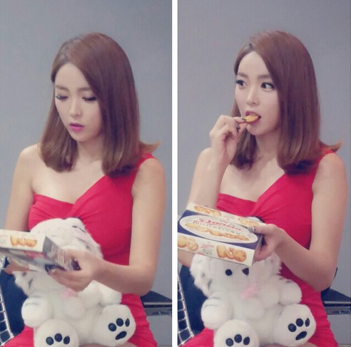 가수 홍진영이 요염한 과자 먹방을 선보였다.