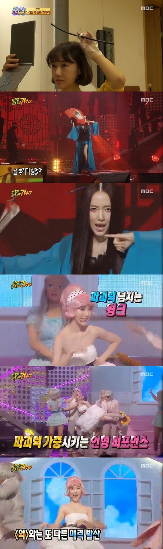 이정현은 3일 오후 방송된 MBC 예능프로그램 '무한도전-토토가'에서 히트곡이었던 '와', '줄래'를 불렀다.