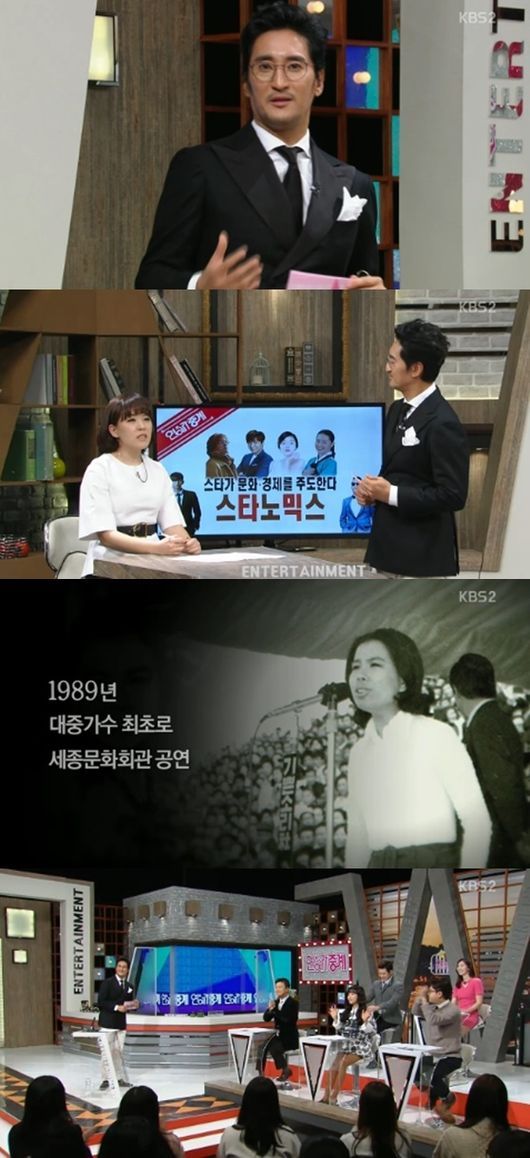 이날 새 코너 ‘강승연PD의 연예가 리포트’가 첫 선을 보였다. 첫 주제는 '스타가 문화, 경제를 주도한다!'. '겨울연가'를 통해 최소 3조원의 경제 효과를 일으킨 배용준부터 최근 종영된 SBS '별에서 온 그대'의 전지현까지 한류를 주도해 온 스타들이 문화, 경제 분야에 끼친 스타노믹스에 관한 분석을 제시했다.