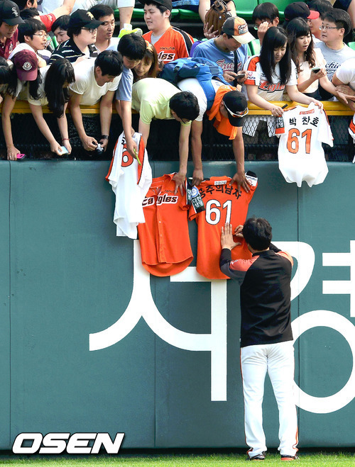 웬만한 스타선수 뺨치는 최고의 인기를 자랑하는 한화 김성근 감독도 팬들의 사인·사진 요청을 거절하는 법이 없다. 김 감독은 "내가 왜 사인을 다 해주는지 아는가? 어쩌면 그 사람과 평생 한 번 만나는 것일지도 모른다. 사인을 받지 못하는 사람은 평생 한이 맺힐 수 있다"며 "팬들을 그냥 지나치면 편하겠지만 그런 실망을 주고 싶지 않다. 일이 있어도 5분 늦으면 된다. 가끔 종이쪼가리에 사인해 달라는 팬을 만나면 기분 나쁠 수 있지만 그 팬은 그만큼 간절하다는 것이다. 잘 나고 못 나고를 떠나 선수들이 그런 의식이 가져야 한다"고 강조했다.