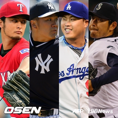 왼쪽부터 다르빗슈-다나카-류현진-이와쿠마.