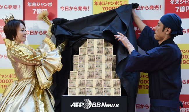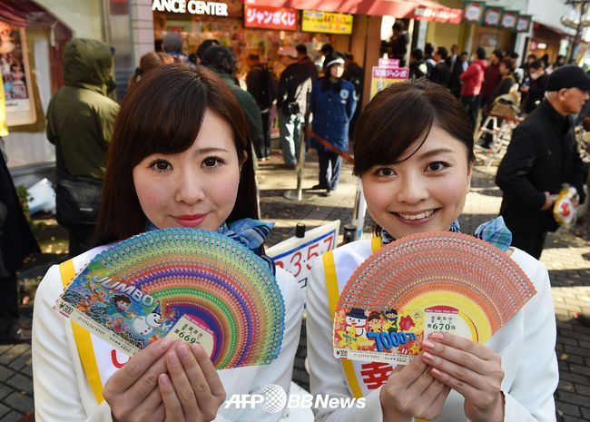 일본의 연말 점보로또 판매 개시 행사 모습. /ⓒAFPBBNews = News1(무단전재 및 재배포 금지).