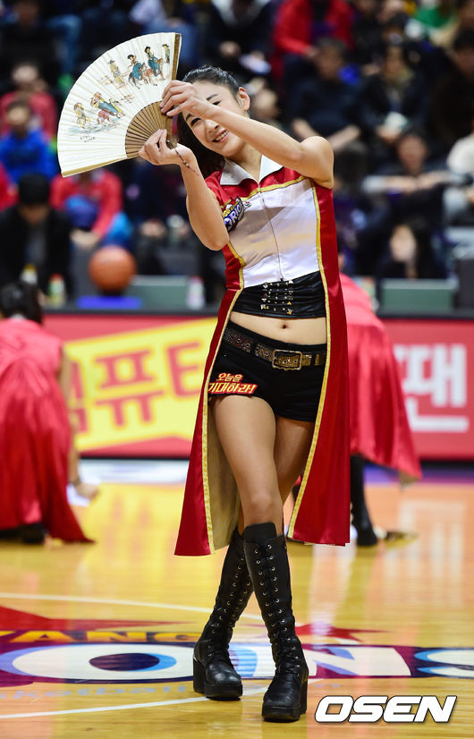 경기에 앞서 치어리더들이 힘찬 응원을 펼치고 있다.