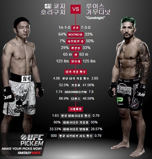호리구치는 4일(이하 한국시간) 미국 네바다주 라스베이거스의 MGM 그랜드가든 아레나에서 열린 'UFC 182' 플라이급 매치에서 가우디넛을 꺾고 승리, UFC 4연승의 상승세를 이어갔다.