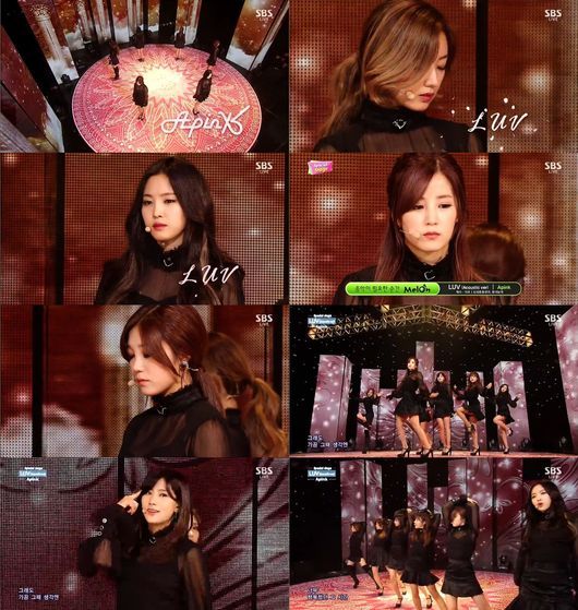 에이핑크는 4일 방송된 SBS '인기가요'에서 '러브(LUV)'로 무대를 꾸몄다.