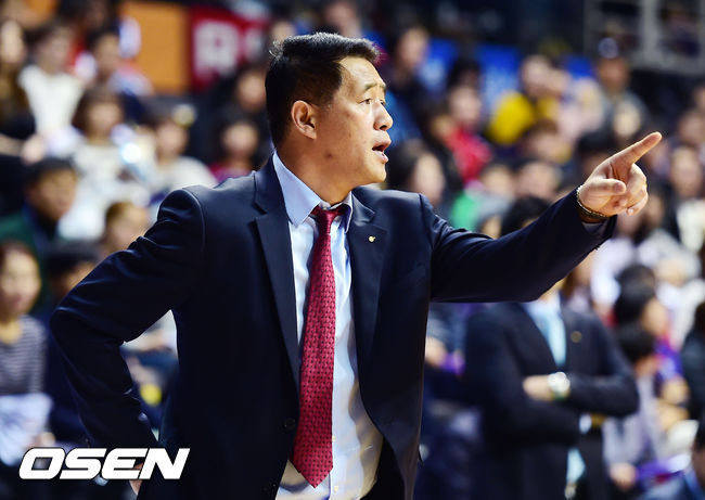 3쿼터, 경기를 지켜보던 오리온스 추일승 감독이 선수들에게 작전을 지시하고 있다.