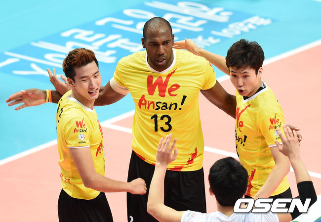 OK저축은행은 4일 안산상록수체육관에서 열린 ‘2014-2015 NH농협 V-리그’ 현대캐피탈과의 경기에서 외국인 선수 시몬을 비롯한 선수들의 고른 활약에 힘입어 3-2(25-17, 23-25, 21-25, 25-18, 16-14)로 역전승을 거두고 승점 2점을 추가했다. 승점 37점을 확보한 2위 OK저축은행은 3위 대한항공(승점 34점)과의 승점차를 3점으로 벌렸다. 반면 현대캐피탈(승점 28점)은 4연패 수렁에 빠지며 5위 자리에 머물렀다.