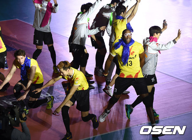 경기 종료 후 OK저축은행 선수들이 승리 세리머니를 펼치고 있다. /sunday@osen.co.kr