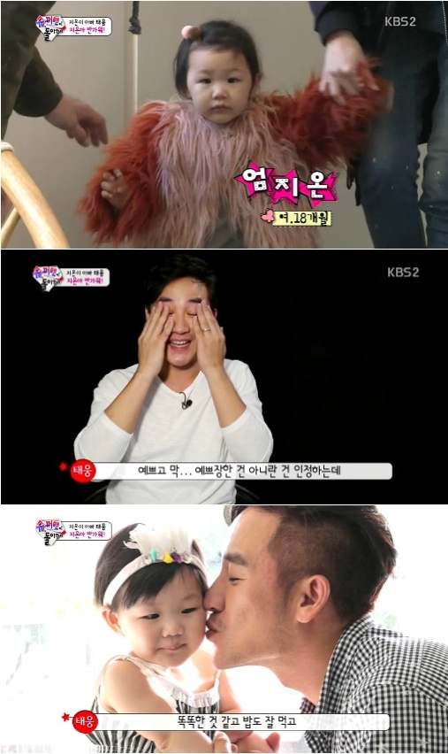 '슈퍼맨이 돌아왔다'에는 추성훈 딸 사랑, 이휘재 쌍둥이 아들 서언 서준, 송일국과 세쌍둥이 아들 대한 민국 만세 등이 출연하고 있다. 이날 새롭게 엄태웅의 딸 지온이 합류했다.