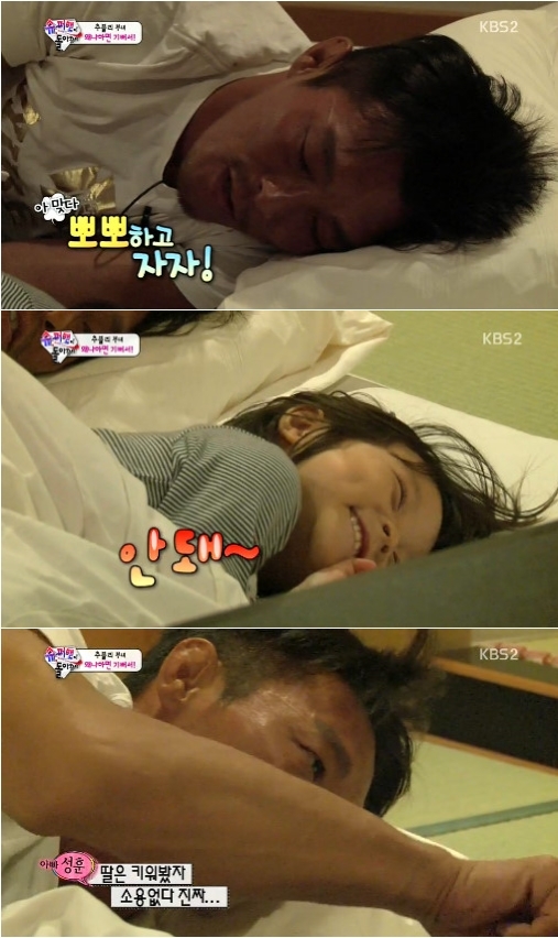 4일 오후 방송된 KBS 2TV 예능프로그램 '해피선데이-슈퍼맨이 돌아왔다'에서는 새해 일출을 보기 위해 일찍 잠드는 추성훈과 사랑 부녀의 이야기가 그려졌다.