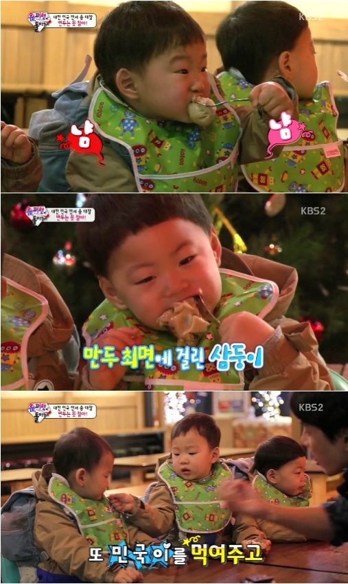 '슈퍼맨이 돌아왔다' 삼둥이들이 또 만두에 빠졌다.