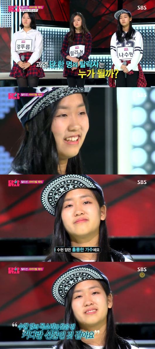 양현석은 “한명의 탈락자를 어쩔 수 없이 결정했다”면서 ‘퍼피스’ 팀에서 나수현을 탈락자로 지목했다. 그는 “오늘 잘했다. 지난 번 무대보다 훨씬 잘하고 칭찬을 많이 받았는데...”라며 말을 잇지 못했다. 양현석은 “지금 나이 15살이다”라고 용기를 북돋았다. 심사위원들의 격려 속에 나수현은 눈물을 흘렸다. 박진영은 “수현 양의 목소리를 찾은 것은 큰 수확”이라고 말했다.