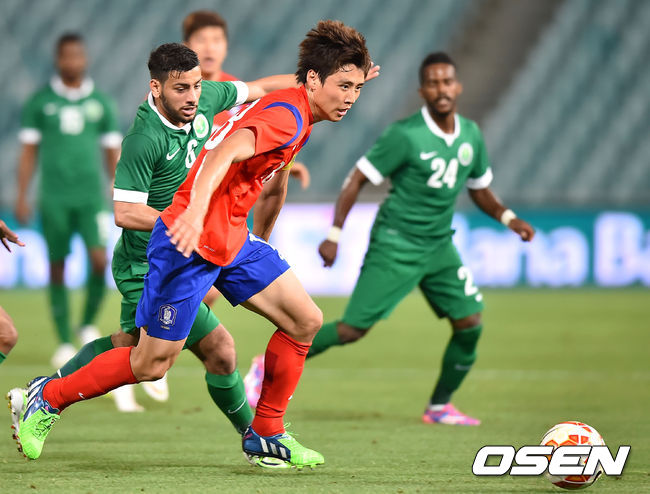 4일 오후 호주 시드니 퍼텍경기장서 열린 사우디아라비아와 평가전에서 전반 한국 구자철이 드리블 돌파를 하고 있다.