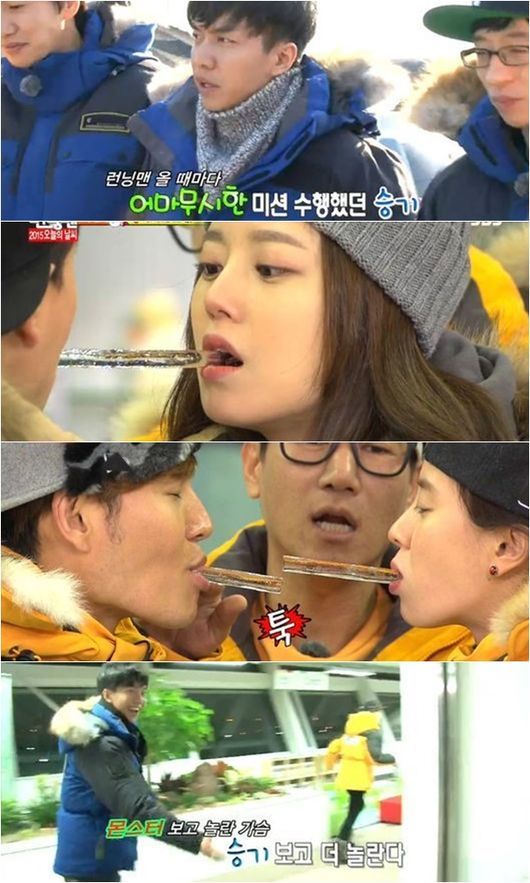 두번째는 얼음 막대 짧게 남기기. 유재석과 이광수는 고개까지 비틀어가며 과자 먹기에 몰두했고, 급기야 입술이 밀착되는 ‘충격과 공포’의 상황이 발생했다. 모두들 입을 다물지 못했고 이광수는 “살면서 여자와도 이렇게 해본 적이 없다”라고 강조해 웃음을 자아냈다.