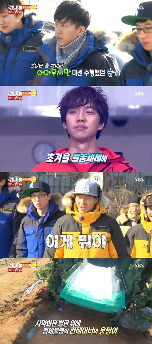 앞서 이승기는 ‘런닝맨’ 출연 당시 한겨울에 찬물을 맞는 고생을 한 바 있다. 그는 “나만 나오면 힘들다”라고 연신 불만을 토로했고 지석진 역시 “승기야 너만 나오면 그래”라고 덧붙여 웃음을 자아냈다.
