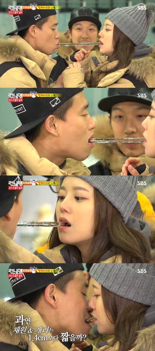 두 사람은 4일 방송된 SBS 예능프로그램 ‘일요일이 좋다-런닝맨’(이하 ‘런닝맨’)에서 얼음 과자를 사이에 두고 입술을 가까이에 댔다. 문채원은 “대학 때 깍두기를 옮기는 게임을 해봤다”라고 자신감을 보였다.