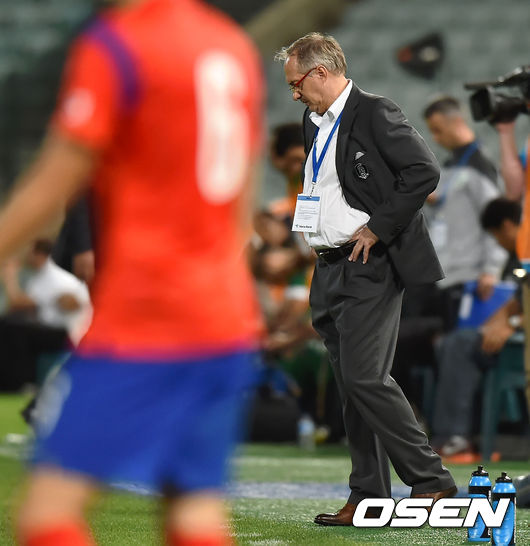 4일 오후 호주 시드니 퍼텍경기장서 열린 한국-사우디의 평가전에서 전반 한국 슈틸리케 감독이 아쉬운 표정을 짓고 있다.