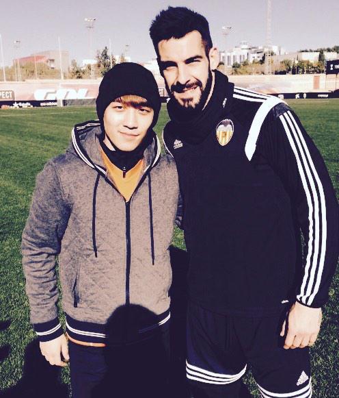 사진 속에서 승리는 축구스타 알바로 네그레도(발렌시아)와 다정하게 서서 카메라를 향해 미소를 짓고 있어 눈길을 끈다.