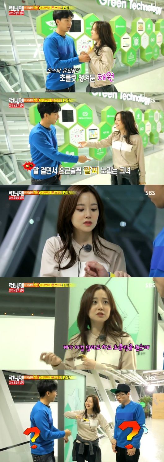 이승기는 4일 방송된 SBS 예능프로그램 ‘일요일이 좋다-런닝맨’(이하 ‘런닝맨’)에서 몬스터를 잡을 수 있는 백신 팔찌를 찾았다. 이를 알게 된 문채원은 이승기의 팔찌를 뺏었다.