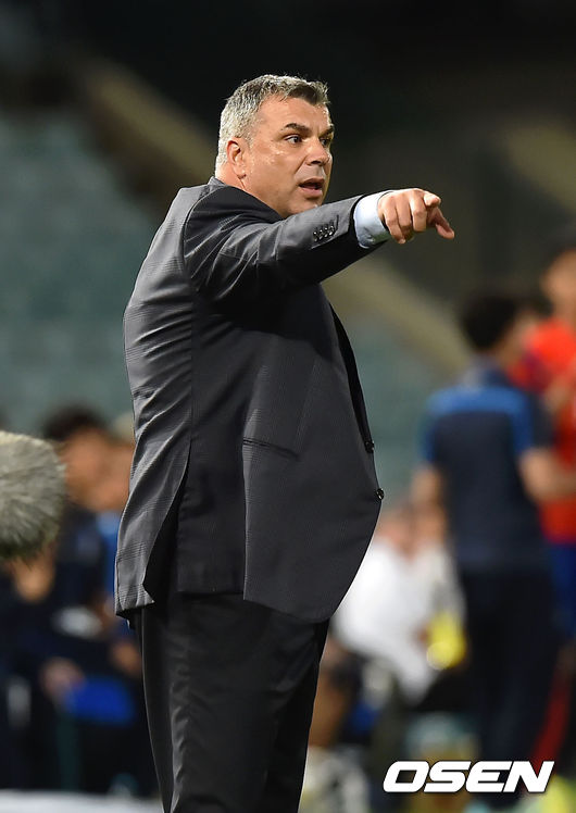 4일 오후 호주 시드니 퍼텍경기장서 열린 한국-사우디의 평가전에서 후반 사우디 코스민 올라로유 감독이 작전을 지시하고 있다.