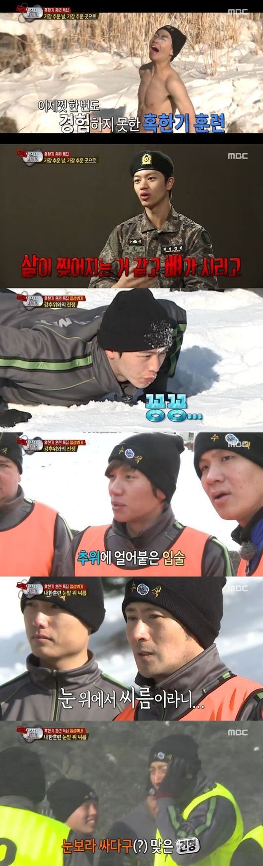 이들은 혹독한 칠성부대에 입대, 추운 날씨에 얇은 체육복을 입고 눈보라 속에서 체력 훈련을 하는가 하면, 추위에 홍조를 띤 얼굴로 강추위와 전쟁을 펼쳐 보는 이들까지 몰입하게 만들었다. 특히 전역을 앞둔 김수로, 샘 해밍턴, 서경석이 지난해에 이어 또 한번의 혹한기 훈련에 임해 '웃픈' 모습을 연출했다.