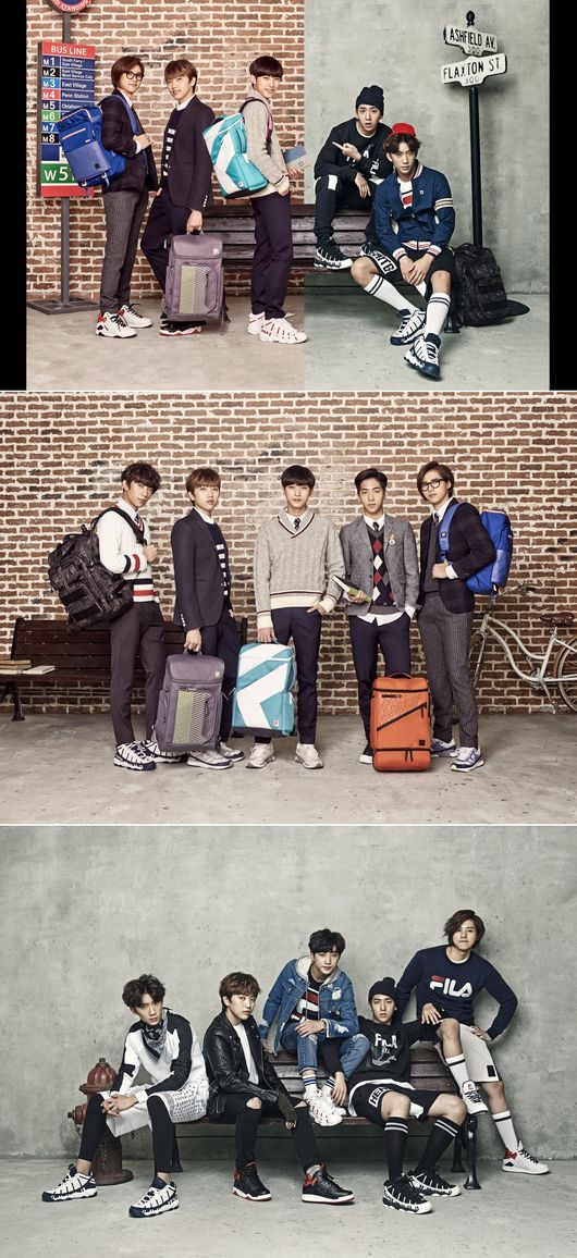 이탈리안 스포츠 브랜드 휠라(FILA)는 5일 남성 아이돌 그룹 B1A4와 함께 진행한 ‘2015 Back to school(백투스쿨) 컬렉션’ 화보를 공개했다. 업체에서는 ‘스쿨룩 종결자’라 부르고 싶어한다.